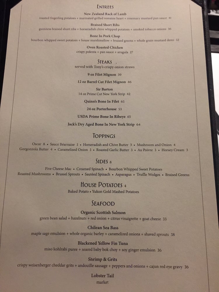 Tony's of Lexington Menu